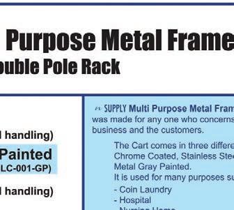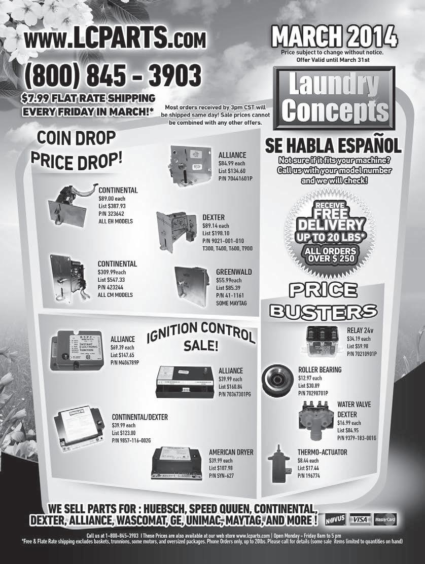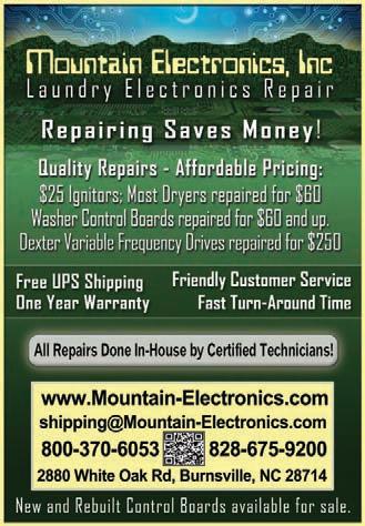 Visit: JECONINC.COM We Now Accept All Major Credit Cards TIMERS REBUILT — IPSO main & reverse, Milnor, Dexter, Primus, Whirlpool, Speed Queen, Maytag & Continental Girbau, Wascomat Generation 4 and 5. Call for price sheet. Reeco Timer Co., 2860 Kirby Circle, N.E., Suite 14, Palm Bay, FL 32905, 888-952-1889. SERVICES AND SUPPLIES WASHERS and DRYERS COMPUTER BOARD REPAIR Dexter VFD Inverter (Delta Motor Control) All Models (9375-xxx-xxx) $225.00 VFD-A & VFD-B (9732-237-001) . . . . . . . . call Stack Dryer (9875-xxx-xxx) . . . . . . . . . $65.00 Coin Accumulator . . . . . . . . . . . . . . . . $55.00 Wascomat / Electrolux Inverters (MotorControl) All call Maytag Computers . . . . . . . . . . . . . . . . . . . . . $65.00 23004118 . . . . . . . . . . . . . . . . . . . . . . . . . call W10343020 . . . . . . . . . . . . . . . . . . . . . . . call 33001129 . . . . . . . . . . . . . . . . . . . . . . $85.00 ADC 137213 / 137234 / 137240 . . . . . . . . . $65.00 Igniters (Fenwall only). . . . . . . . . . . . . . $30.00 Speed Queen / Huebsch Computers . . . . . . . . . . . . . . . . . . . . . $65.00 Motor Control . . . . . . . . . . . . . . . . . . . $95.00 IPSO 209/00440/70 (Micro 20). . . . . . . . . . $115.00 10% NEW CUSTOMER DISCOUNT Volume Discounts • One-Year Warranty Free Return Shipping El - Tech, Inc. 26 West St. Colonia, NJ 07067 For Complete Price List Please Call: 732-381-7620 or 908-510-6520 or visit us at www.eltechlab.com EQUIPMENT WANTED WASCOMAT WASHERS & WASCOMAT DRYERS 704-592-2022. WANTED Coin-operated commercial Whirlpool or Kenmore top load washers. Prefer as is but will purchase reconditioned. Call 727-596-9607 or 800-749-9607. COMPUTER BOARDS FIXED HHC ELECTRONIC SERVICE 14844 Las Tunas Drive, Hacienda Hts., CA 91745 626-961-8678 • 800-820-9888 E-mail: hhc168@hotmail.com Repaired & Rebuilt to Manufacture Specs. Summer Discounts! Shipped Anywhere. • American • Dexter • • Easy Card, ESD • • Huebsch • Speed Queen • WILL BUY ANY EQUIPMENT (WASHERS AND DRYERS) ON WEST COAST. 888-205-0884. SERVICES AND SUPPLIES SERVICES AND SUPPLIES Place your ad ONLINE www.AmericanCoinOp.com LOOKING TO SELL SOME USED EQUIPMENT? Contact classified sales to place your ad! classifieds@ americantrademagazines.com WASHER AND DRYER COMPUTER BOARDS REBUILT Igniters repaired Washers: $70 - & up Dryers: $40 - & up Igniters: $25 - & up Rebuilt Timers - Wascomat, Huebsch, Speed Queen, IPSO, Laundry Center, Maytag Call for exact price which includes free return shipping METRO LAUNDRY TECH CORP. 1490 Boston Rd., Ground Floor, Bronx, NY 10460 ONE-YEAR WARRANTY ON ALL REPAIRS Please call 718-742-4137 Or 718-733-4313 Or Visit our website at www.metrolc.com e-mail us at metrolc@hotmail.com Repair Front Load WASHER Bearings. Call Tony P. 516-805-4193 EQUIPMENT REPAIRS PARTS FOR SALE