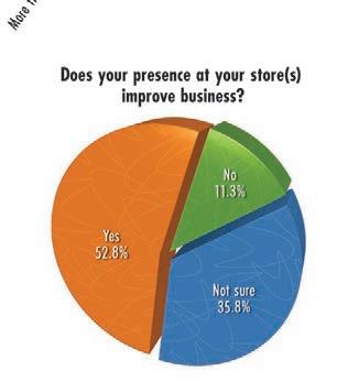 More than half of respondents (52.8%) believe that their presence at their store(s) improves business, while 11.3% disagreed. The remaining 35.8% were unsure if their presence there improves business.