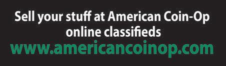 American Coin-Op (ISSN 0092-2811) is published monthly. Subscription prices, payment in advance: U.S., 1 year $39.00; 2 years $73.00. Foreign, 1 year $89.00; 2 years $166.00. Single copies $7.00 for U.S., $14.00 for all other countries. Published by American Trade Magazines LLC, 566 West Lake Street, Suite 420, Chicago, IL 60661. Periodicals postage paid at Chicago, IL and at additional mailing offices.