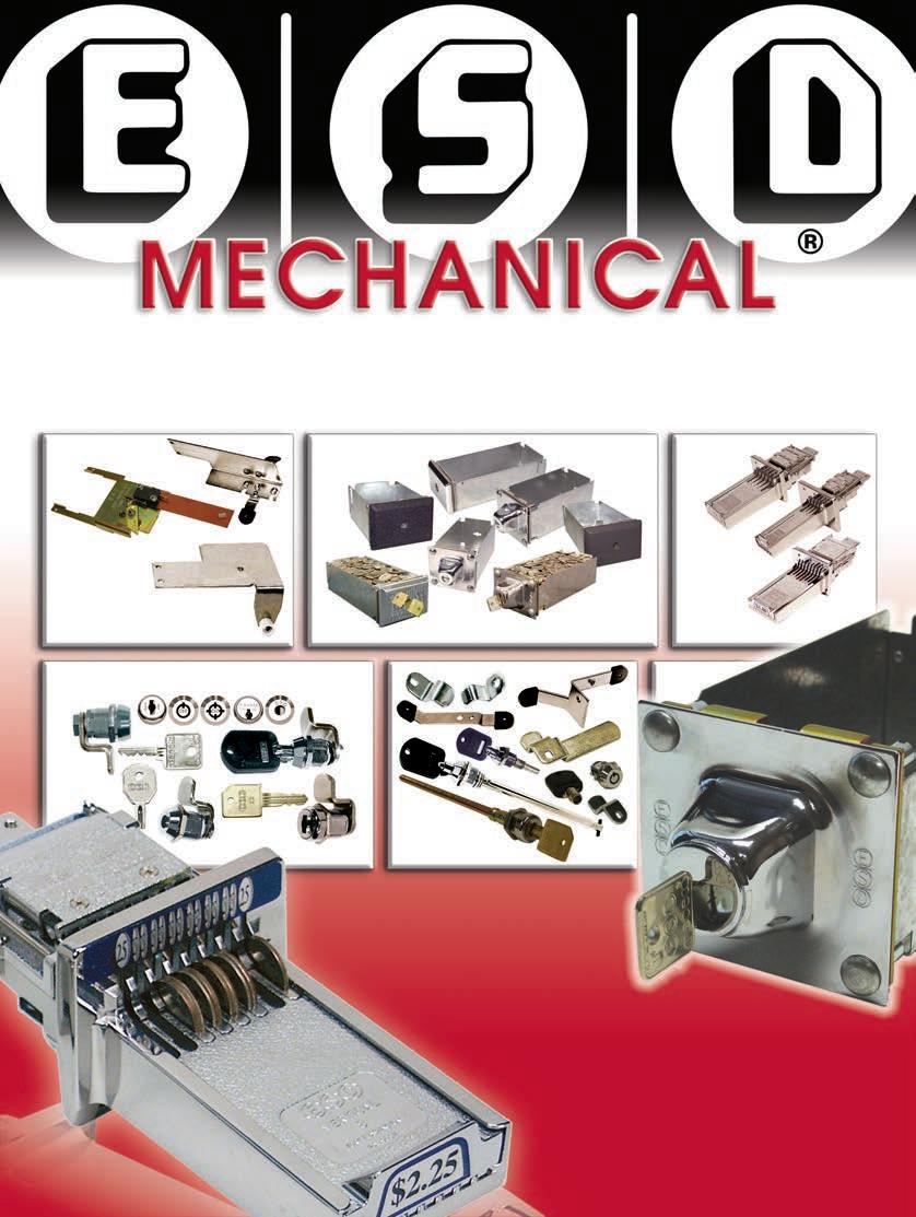 ESD leads the industry in bringing a wide selection of time tested and proven slides, money boxes, locks, key shafts and cams for any laundry or vending application. ESD products are available for Immediate Delivery ESD Inc. Phone: 215-628-0860 Fax: 215-643-4623 Contact Your ESD Distributor or visit us at www.esdcoin.com SV5 V4 V8 V14 Money Boxes CoinSlides Extensions Cams, Locks & Shafts Locks & Keys ESD has 40+ Years of designing and manufacturing superior mechanical payment system products for the World. It Takes Years To Build A Legacy It Takes Years To Build A Legacy