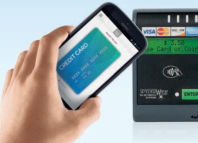 A joint venture between AT&T Mobility, T-Mobile USA and Verizon Wireless, 200 million customers strong • have over 20,000 retail outlets • represent over 75% of smartphone sales GoSoftcard.com ©2014 All Rights Reserved. All trademarks, service marks and trade names referenced in this material are the property of their respective owners. Softcard and the associated logos are trademarks of JVL Ventures, LLC. Contactless Symbol is property of EMVCo, LLC. Other third-party trademarks are the property of their respective owners. © 2014 JVL Ventures, LLC. All rights reserved. O FFERS AND LOYALTY THIS OPPORTUNITY DOESN’T KNOCK, IT TAPS 516.752.8008 www.setomaticsystems.com Setomatic and USA Technologies are proud to announce SpyderWash Elite, featuring SmartTap™ technology. This allows operators to reward customers that pay with Softcard™ with a 25% discount on each load at no cost to your laundry. • Leverage Mobile Technology and gain a competitive advantage • Accept Coin, Credit, Debit and all Mobile Wallet Payments • Reward Customers: Softcard Users Get 25% o Self-Serve Laundry A joint venture between AT&T Mobili Sof tcard’s founders: • are 200 million customers strong • over 20,000 retail outlets ALL I N O N E APP
