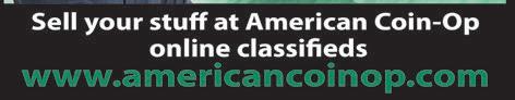 American Coin-Op (ISSN 0092-2811) is published monthly. Subscription prices, payment in advance: U.S., 1 year $39.00; 2 years $73.00. Foreign, 1 year $89.00; 2 years $166.00. Single copies $7.00 for U.S., $14.00 for all other countries. Published by American Trade Magazines LLC, 566 West Lake Street, Suite 420, Chicago, IL 60661. Periodicals postage paid at Chicago, IL and at additional mailing offices.