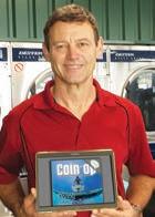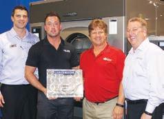 Continental Girbau named Coronet Equipment its 2014 Canadian Distributor of the Year. (From left) Girbau Industrial National Sales Manager Seth Willer, Coronet’s Chase Jackson and Terry Rosin, and Continental President Mike Floyd pose with Coronet’s plaque for its “outstanding sales and distribution” in the vended and on-premise laundry markets.