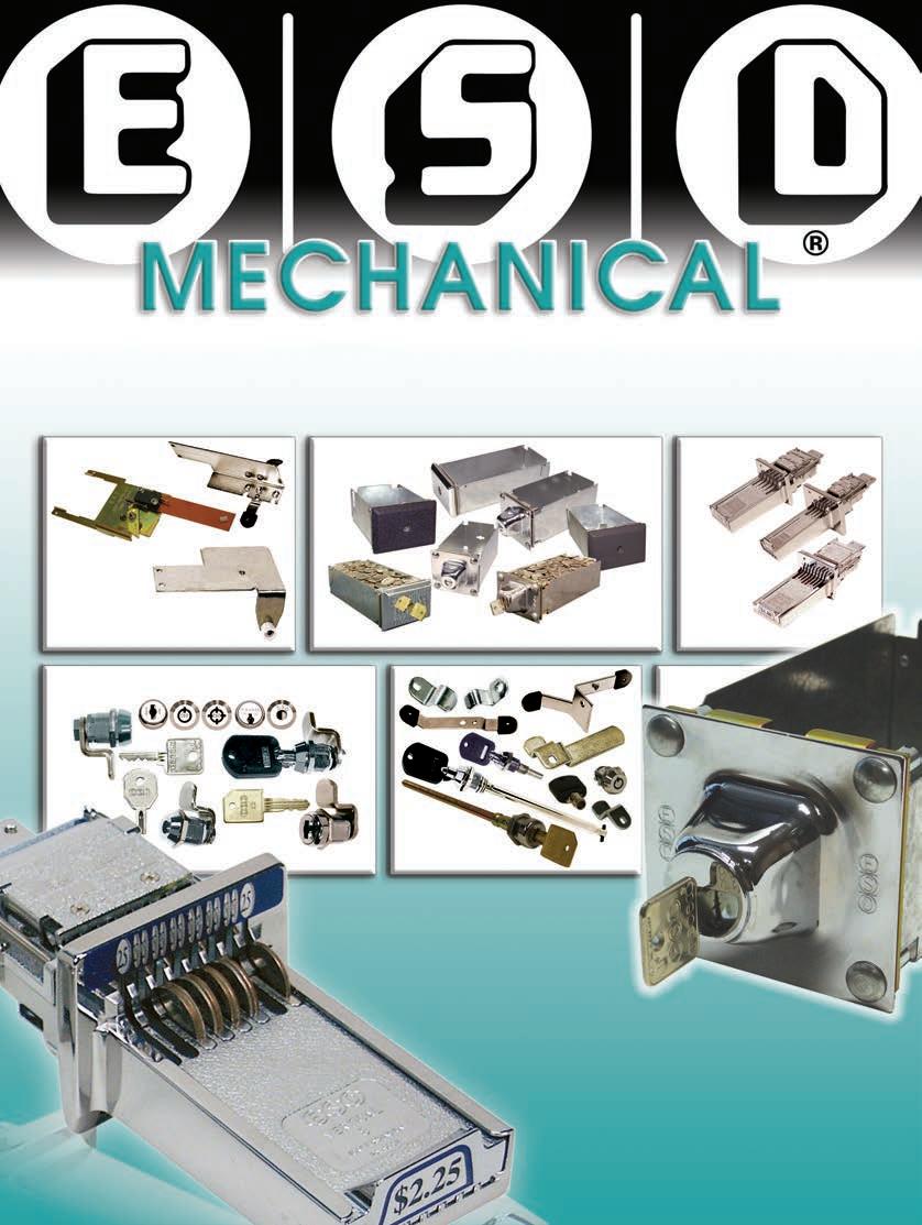ESD leads the industry in bringing a wide selection of time tested and proven slides, money boxes, locks, key shafts and cams for any laundry or vending application. ESD products are available for Immediate Delivery ESD Inc. Phone: 215-628-0860 Fax: 215-643-4623 Contact Your ESD Distributor or visit us at www.esdcoin.com SV5 V4 V8 V14 Money Boxes CoinSlides Extensions Cams, Locks & Shafts Locks & Keys ESD has 45+ Years of designing and manufacturing superior mechanical payment system products for the World. It Takes Years To Build A Legacy It Takes Years To Build A Legacy