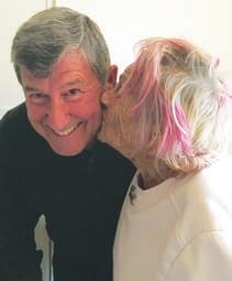 Stan Fox gets a kiss from “Mimi” Haist, the homeless woman he allowed to live out of his SoCal laundry for many years.