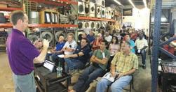 A presenter speaks to the audience during Laundry Owners Warehouse’s recent Dexter service school in Ft. Lauderdale, Fla. (Photo: Laundry Owners Warehouse)