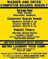COMMERCIAL LAUNDROMATS Washer and dryer bearing jobs. Mostly all brands. All work guaranteed. *BEST PRICES* Call for a quote, 718-323-9223