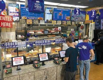 An estimated half of the laundry crowd eats or drinks on a visit — all streamlined by touchscreen order-taking kiosks positioned near the main laundry card station.
