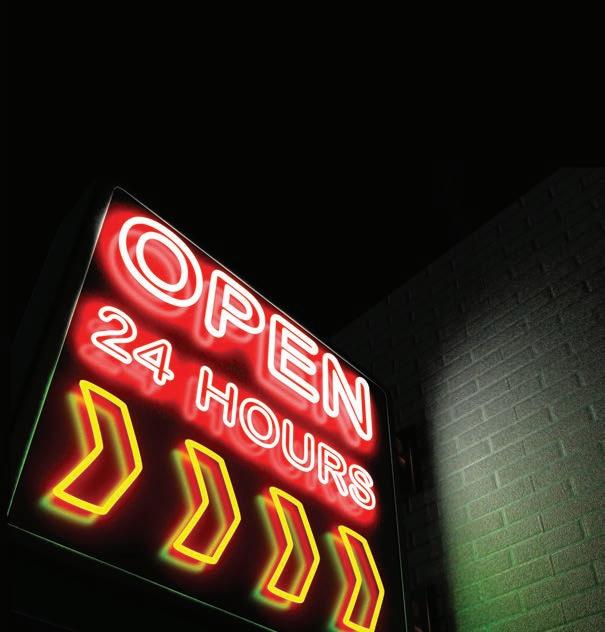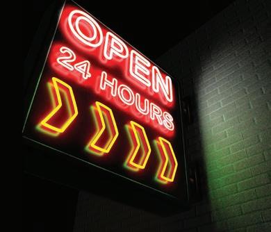 appropriate, staying open around the clock offers added revenue opportunities and serves to generate goodwill among shift workers and other ‘night owls’ in your area who can appreciate