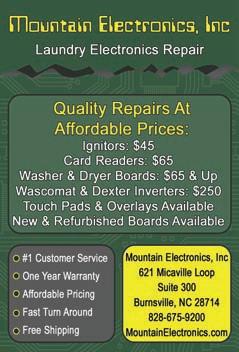 Also in this new year, we welcome our magazine’s new Advisory Board: Jaimie Johnson, Dexter Laundry; Douglas Pratt, Gold Coin Laundry Equipment; Tony Regan, Eastern Funding; Sharon Sager, store owner from California; Michael Schantz, Setomatic Systems; Luke Williford, multi-store owner from North Carolina; and Andy Wray, ACE Commercial Laundry Equipment.