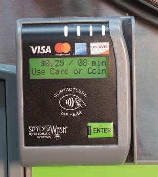 Visa expects more than 100 million contactless cards will be in the hands of American consumers by the end of 2019 and they are currently accepted at 78 of Visa’s top 100 merchants. With SpyderWash, customers simply hold/tap their credit card a few inches from the card reader, and the vend is satisfied.