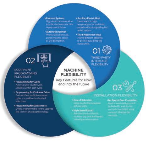 Choose machines that offer flexible programming for cycles, maintenance and customer extras. This helps ensure your laundry is prepared for unforeseen adaptations down the road.
