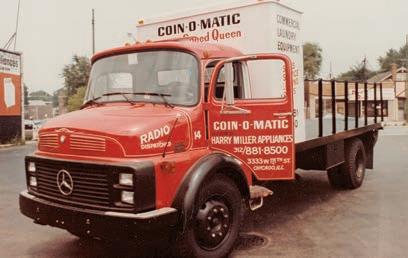 (Near left) A delivery truck for Coin-O-Matic, one of the nation’s oldest commercial laundry dealers.