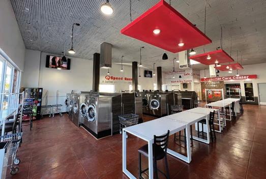 Fast, efficient washer-extractors and tumble dryers offer custom ers exceptional flexibility to tailor cycles, while getting them in and out in an hour, all in a clean, well-lit environment with vibrant colors, the owners say. The store also features wash/dry/fold service for customers whose time is at a premium.
