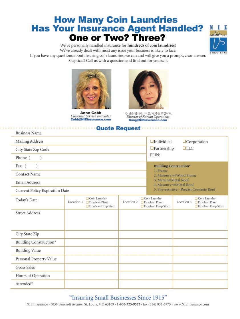 POSTMASTER, Send changes of address and form 3579 to American Coin-Op, Subscription Dept., 125 Schelter Rd., #350, Lincolnshire, IL 60069-3666. Volume 65, number 6. Editorial, executive and advertising offices are at 650 West Lake Street, Suite 320, Chicago, IL 60661. Charles Thompson, President and Publisher. American Coin-Op is distributed selectively to owners, operators and managers of chain and individually owned coin-operated laundry establishments in the United States. The publisher reserves the right to reject any advertising for any reason.