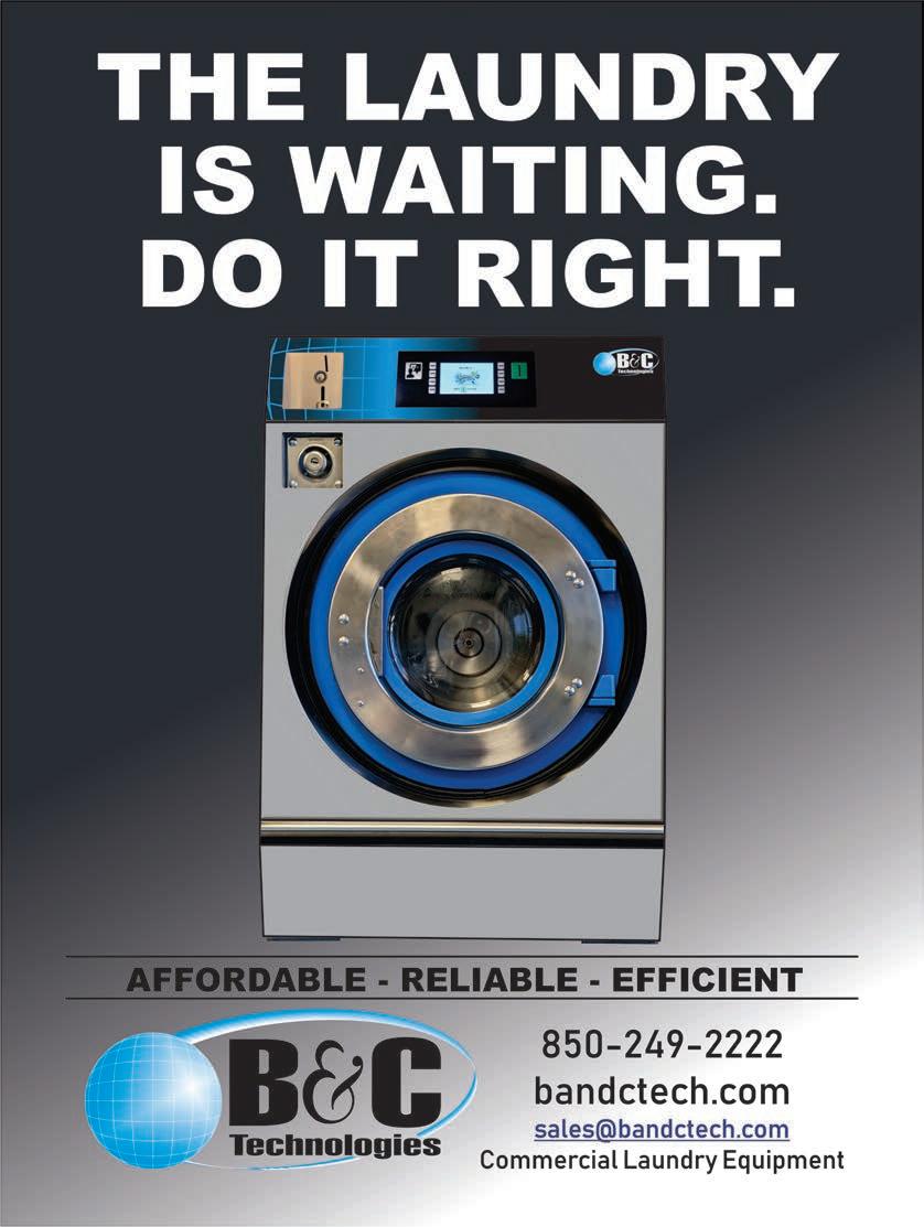 B&C washers intentionally use fewer parts than comparable machines, the company says. Along with exceptional machine performance, B&C’s extensive and experienced service and parts personnel are available to assist, with most parts shipping the same day. bandctech.com 850-249-2222