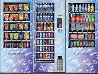 The product selection buttons illuminate when product is available, blink while vending, and go dark when the column is empty. The large blue LED display is easy to read and scrolls a friendly, informative message when the vender is idle.