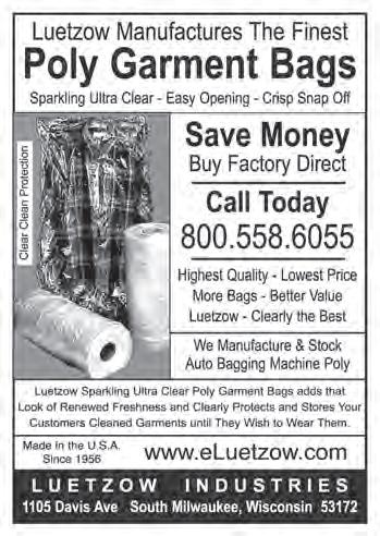 POSTMASTER, Send changes of address and form 3579 to American Drycleaner, Subscription Dept., 440 Quadrangle Drive, Suite E, Bolingbrook, IL 60440 Volume 79, number 9. Editorial, executive and advertising of fices are at 566 West Lake Street, Suite 420, Chicago, IL 60661. Charles Thompson, President and Publisher. American Drycleaner is distributed selectively to: qualified dry cleaning plants and distributors in the United States. No material appearing in American Drycleaner may be reprinted without written permission. The pub lisher reserves the right to reject any advertising for any reason. © Copyright AMERICAN TRADE MAGAZINES LLC, 2013. Printed in U.S.A.