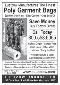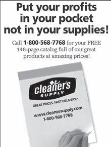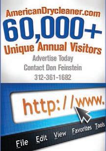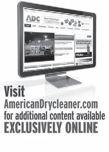 POSTMASTER, Send changes of address and form 3579 to American Drycleaner, Subscription Dept., 440 Quadrangle Drive, Suite E, Bolingbrook, IL 60440 Volume 80, number 1. Editorial, executive and advertising of fices are at 566 West Lake Street, Suite 420, Chicago, IL 60661. Charles Thompson, President and Publisher. American Drycleaner is distributed selectively to: qualified dry cleaning plants and distributors in the United States. No material appearing in American Drycleaner may be reprinted without written permission. The pub lisher reserves the right to reject any advertising for any reason. © Copyright AMERICAN TRADE MAGAZINES LLC, 2013. Printed in U.S.A.
