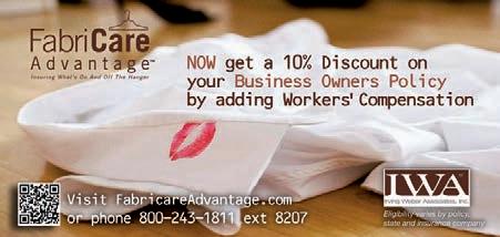 POSTMASTER, Send changes of address and form 3579 to American Drycleaner, Subscription Dept., 440 Quadrangle Drive, Suite E, Bolingbrook, IL 60440. Volume 80, number 9. Editorial, executive and advertis ing offices are at 566 West Lake Street, Suite 420, Chicago, IL 60661. Charles Thompson, President and Publisher. American Drycleaner is distributed selectively to: qualified dry cleaning plants and distributors in the United States. No material appearing in American Drycleaner may be reprinted without written permission. The publisher reserves the right to reject any advertising for any reason. © Copyright AMERICAN TRADE MAGA ZINES LLC, 2014. Printed in U.S.A.