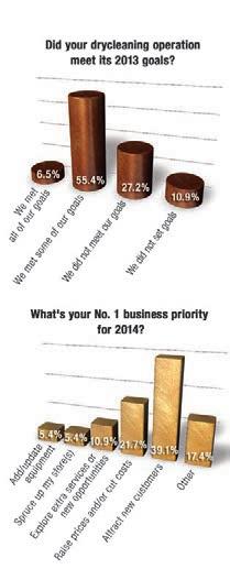 The majority of dry cleaners are opti mistic about meeting their business and personal priorities for the new year, as 35.9% say they have a “good chance [to] accomplish both goals.” Roughly 29% say they have a “50/50 chance,” while 23.9% say “there’s no doubt” they will accom plish their goals. Small percentages believe they have a “slim chance” (7.6%) or “no chance” (3.3%).