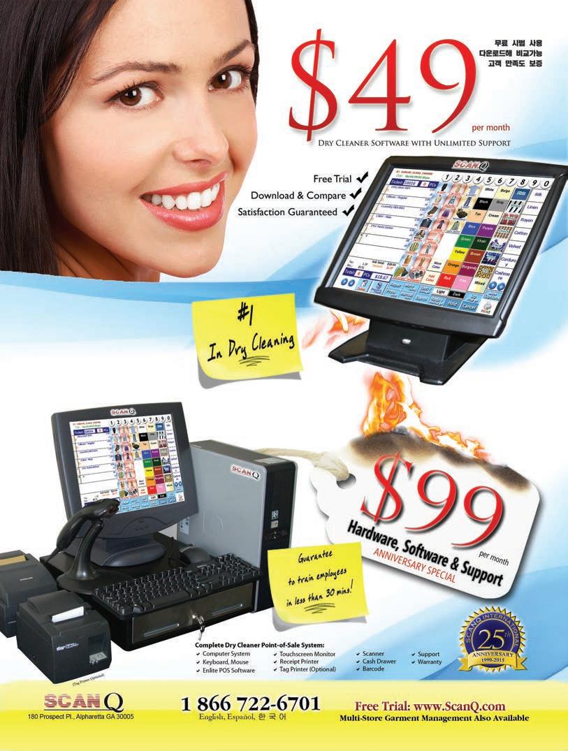 © Copyright AMERICAN TRADE MAGAZINES LLC, 2015. Printed in U.S.A. No part of this publication may be transmitted or reproduced in any form, electronic or mechanical, without written permission from the publisher or his representative. American Drycleaner does not endorse, recommend or guarantee any article, product, service or information found within. Opinions expressed are those of the writers and do not necessarily reflect the views of American Drycleaner or its staff. While precautions have been taken to ensure the accuracy of the magazine’s contents at time of publication, neither the editors, publishers nor its agents can accept responsibility for damages or injury which may arise therefrom.