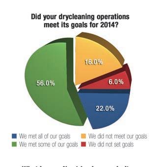 Looking back at 2014, 56% of cleaners say their operation met “some” of its goals, while another 22% say their operation “met all” of its goals. Sixteen percent of respondents admitted that their operation “did not meet our” goals. Only a small percentage (6%) set no goals at all.