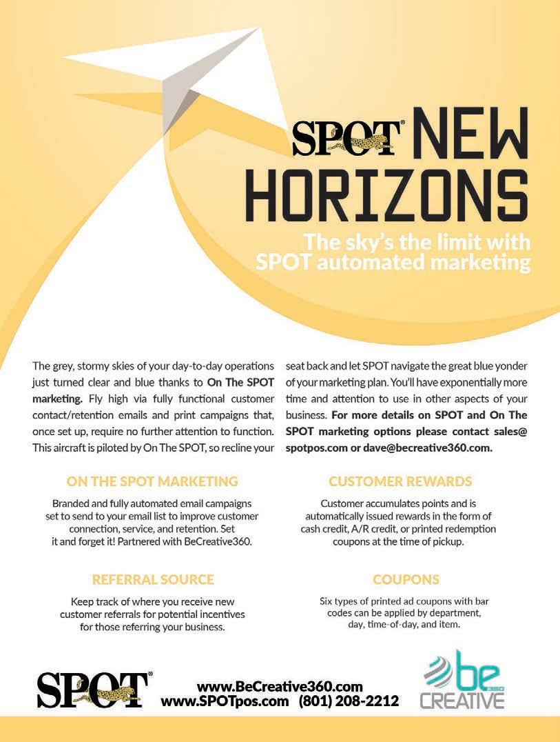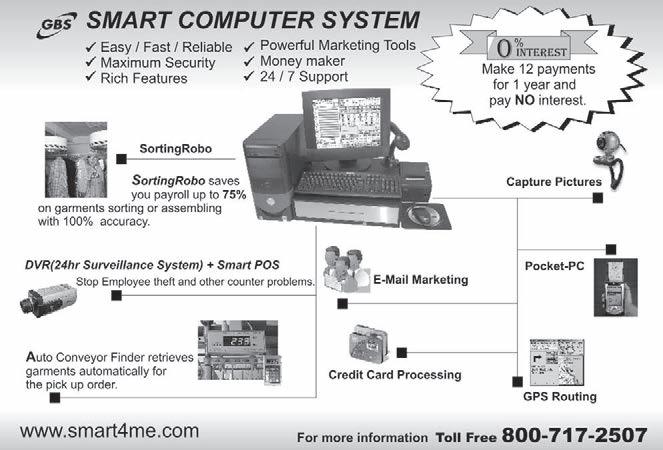 “We started out in 2001 at $1.50 a pound with a 20-pound minimum,” Blank says. “I now do up to $4 or $5 a pound. … There are many, many places where you can market both your dry cleaning and your fluff-andfold, and I think people are leaving a lot of money on the table.” ADC