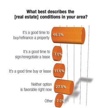Among dry cleaners polled in July’s American Drycleaner Your Views survey, 46.5% believe that now is a good time to buy or refinance a property in their area, while 7% say conditions are good for signing or renegotiating a lease.