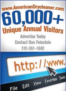 American Drycleaner (ISSN 0002-8258) is published monthly except Nov/Dec combined. Subscription prices, payment in advance: U.S., 1 year $39.00; 2 years $73.00. Foreign, 1 year $89.00; 2 years $166.00. Single copies $7.00 for U.S., $14.00 for all other countries. Published by American Trade Magazines LLC, 566 West Lake Street, Suite 420, Chicago, IL 60661. Periodicals postage paid at Chicago, IL and at additional mailing offices.