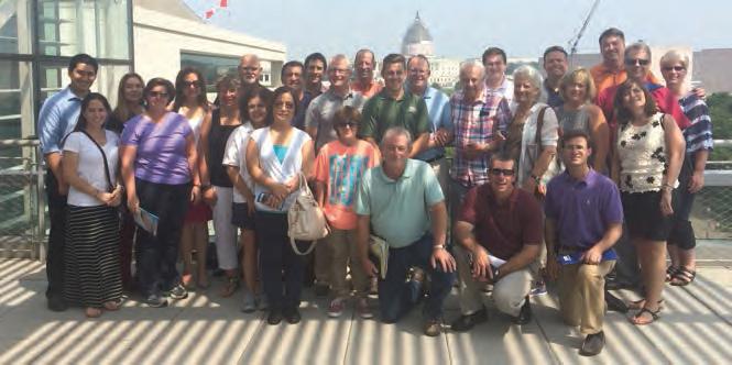 The Tuchman Cost Group met recently in Washington, D.C.: (Front row, from left) Jung Haddox, Gage Wilson, Terry Quinn (MW Cleaners), Brett Allen (Medlin-Davis Cleaners), and David Makepeace (Medlin-Davis Cleaners). (Middle row, from left) Jessica Ramirez, Ann Nash (Highland Cleaners), Cyndee Billoni (Colvin Cleaners), Keri Quinn, Paul Billoni (Colvin Cleaners), Peter Bergmann (Berg mann’s Cleaning), Chris Billoni (Colvin Cleaners), Sid Tuchman (Tuchman Training Systems), Charlene
