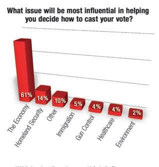 No other choices—homeland security (14%), “other” (10%), immigration (5%), gun control (4%), healthcare (4%) and the enviroment (2%) —were even close.
