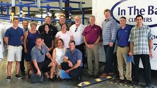 Members of the Tuchman Advisory Group pose for a group photo during their June meeting at In The Bag Cleaners in Wichita, Kan.: (front row, kneeling, from left) Paul Billoni (Colvin Cleaners), Ellen Rothmann (Tuchman Advisory Group), Brett Allen (Medlin-Davis, South); (middle row, from left): Chris Billoni (Colvin Cleaners), Cyndee Billoni (Colvin Cleaners), Aram Coyle (In The Bag Cleaners), Anne Nash (Highland Cleaners); (back row, from left) Frank Dubasik (Metalprogetti), Dave Coyle (In The Bag Cleaners), Bruce Squires (Martinizing Green Earth Cleaners), Chuck Haddox (MW Cleaners), Rick Kirksey (Munro Cleaners), Mike Nesbit (MW Cleaners), Todd Watkins (Martinizing), and Gary Futterman (Flair Cleaners). (Photo: Tuchman Advisory Group) (continued)
