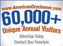 American Drycleaner (ISSN 0002-8258) is published monthly except Nov/Dec combined. Subscription prices, payment in advance: U.S., 1 year $46.00; 2 years $92.00. Foreign, 1 year $109.00; 2 years $218.00. Single copies $9.00 for U.S., $18.00 for all other countries. Published by American Trade Magazines LLC, 566 West Lake Street, Suite 420, Chicago, IL 60661. Periodicals postage paid at Chicago, IL and at additional mailing offices.