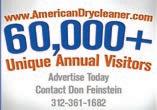 American Drycleaner (ISSN 0002-8258) is published monthly except Nov/Dec combined. Subscription prices, payment in advance: U.S., 1 year $46.00; 2 years $92.00. Foreign, 1 year $109.00; 2 years $218.00. Single copies $9.00 for U.S., $18.00 for all other countries. Published by American Trade Magazines LLC, 566 West Lake Street, Suite 420, Chicago, IL 60661. Periodicals postage paid at Chicago, IL and at additional mailing offices.