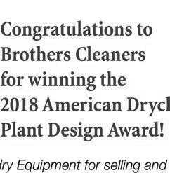 © Copyright AMERICAN TRADE MAGAZINES LLC, 2018. Printed in U.S.A. No part of this publication may be transmitted or reproduced in any form, electronic or mechanical, without written permission from the publisher or his representative. American Drycleaner does not endorse, recommend or guarantee any article, product, service or information found within. Opinions expressed are those of the writers and do not necessarily reflect the views of American Drycleaner or its staff. While precautions have been taken to ensure the accuracy of the magazine’s contents at time of publication, neither the editors, publishers nor its agents can accept responsibility for damages or injury which may arise therefrom.