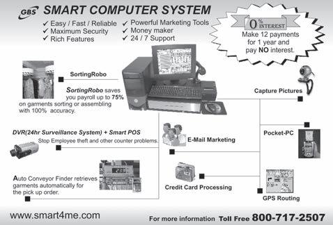 Also, I asked the same drycleaning owners if they get to industry shows like this month’s Fabricare Show in Long Beach? Three of the four owners I talked with are going to the show or sending someone. Besides delegating your time wisely, you, as the owner/operator, need to be aware of the companies providing your plant’s products and equipment. So we feature our yearly Distributors Directory in this issue beginning on page 6. We also have our popular columnist Diana Vollmer, asking you to consider outsourcing more of your tasks in her latest column, Advantage, You!