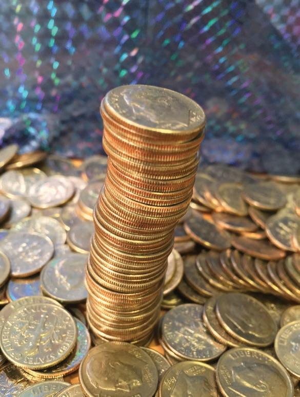 It’s Dime Time! A tower of 10-centers can add up. Or as one dry cleaner in a small Michigan town puts it, these “little ups” of price increases work best for him and his customers. (Photo: Tim Burke)