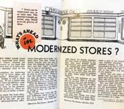 ers are more interested in the kind that they can have now, or at least soon. Not some idealized store of the future. The possibilities of improving a store, even in these times, are almost endless. Especially if a cleaner is willing to wait a while for materials. To get a better idea of some of these possibilities, walk into the real store shown here. Look at it, first as the designer did when he walked in. Then see just what he did, in detail, to modernize it.” ADC