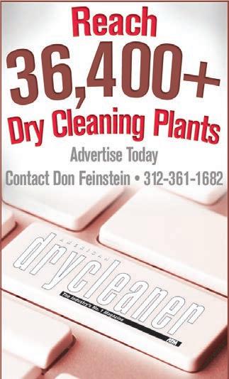 Paying too much for spotters? Buy 3 Get 1 Free! Buy online and save. DryCleanerSoap.com CHEMICALS www.AmericanDrycleaner.com 000+ Annual Visitors Advertise Today Contact Don Feinstein • 312-361-1682 GARMENT LABELING HEAT SEAL PRESSES from EzProducts International Inc. Toll Free 877.906.1818 www.ezpi.us You Deserve the Best! The Ultimate Heat Seal Machine Proudly made in the U.S.A. Built to OSHA standards 2 YEAR WARRANTY 3 models, 7 different interchangeable lower platens and single or dual heated platens Partnership Equity Partner (in- training) Ehrenreich & Associates is looking for Retired Business Owner or B to B Sales Pro to join E & A as an Equity Partner (in-training) while you learn the Business Merger, Brokerage, Expert Witness & Consulting professions. Reply with your history, location, Contact Info & availability: Ehrenassoc@gmail.com WWW.AMERICANDRYCLEANER.COM www.AMERICANDRYCLEANER.com For more classifieds, visit: