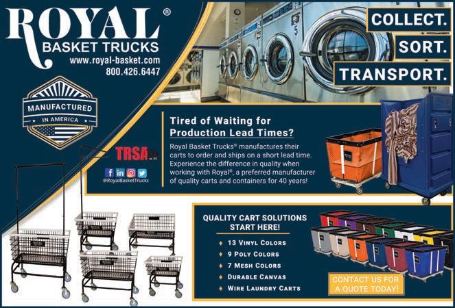 © Copyright AMERICAN TRADE MAGAZINES LLC, 2024. Printed in U.S.A. No part of this publication may be transmitted or reproduced in any form, electronic or mechanical, without written permission from the publisher or his representative. American Drycleaner does not endorse, recommend or guarantee any article, product, service or information found within. Opinions expressed are those of the writers and do not necessarily reflect the views of American Drycleaner or its staff. While precautions have been taken to ensure the accuracy of the magazine’s contents at time of publication, neither the editors, publishers nor its agents can accept responsibility for damages or injury which may arise therefrom.