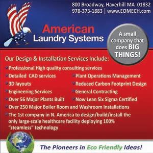So it is that American Laundry News adds a vital reference source to your toolbox—our annual Buyer’s Guide, which enables you to easily connect with leading manufacturers and suppliers serving institutional/OPL, cooperative, commercial and industrial laundries today.