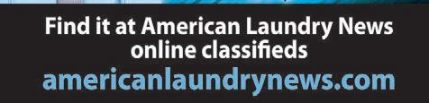 American Laundry News (ISSN 1091-9201) is published monthly. Subscription prices, payment in advance: U.S. & possessions, 1 year $39.00; 2 years $73.00. Foreign, 1 year $89.00; 2 years $166.00. Single copies: U.S. & possessions $7.00; Foreign $14.00.