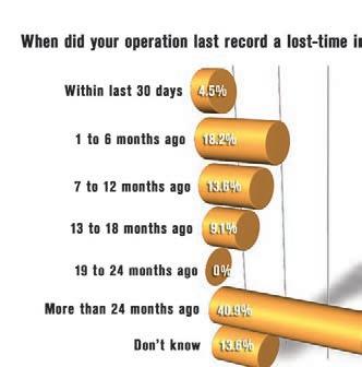 Roughly 14% of respondents said they “don’t know” when the last losttime injury was recorded in their operation.