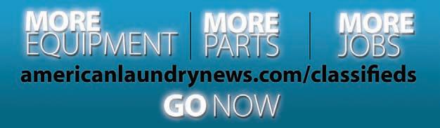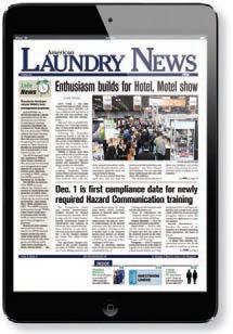 American Laundry News (ISSN 1091-9201) is published monthly. Subscription prices, payment in advance: U.S. & possessions, 1 year $39.00; 2 years $73.00. Foreign, 1 year $89.00; 2 years $166.00. Single copies: U.S. & possessions $7.00; Foreign $14.00. Published by American Trade Magazines LLC, 566 West Lake Street, Suite 420, Chicago, IL 60661. Periodicals postage paid at Chicago, IL, and at additional mailing offices.