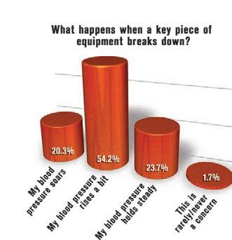 Roughly 20% say their blood pressure soars when equipment fails, while 23.7% say blood pressure holds steady when that happens. A small fraction (1.7%) say they rarely or never experience such breakdowns.