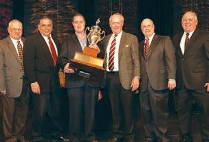 Dean and Doug Fowler (center) of Fowler Equipment Co. accept the Fred Maytag Award during Maytag Commercial Laundry’s 56th annual meeting in Tucson, Ariz. Joining them are (from left) Dick Ruel, John Maltese, Bob English and Randy Karn. (Photo: Maytag Commercial Laundry)