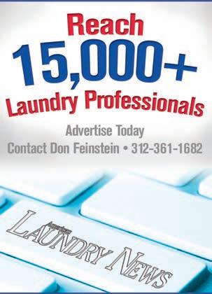POSTMASTER, Send changes of address and form 3579 to American Laundry News, Subscription Dept., 440 Quadrangle Drive, Suite E, Bolingbrook, IL 60440. Volume 40, number 5. Editorial, executive and advertising offices are at 566 West Lake Street, Suite 420, Chicago, IL 60661. Charles Thompson, President and Publisher. American Laundry News is distributed selectively to qualified laundry and linen management and distributors in the United States. No material appearing in American Laundry News may be reprinted without written permission. The publisher reserves the right to reject any advertising for any reason.