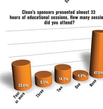 Besides the exhibits on the show floor, some 33 hours of educational sessions took place at Clean 2015. Nearly half of respondents who attended (47.6%) didn’t attend an educational session.