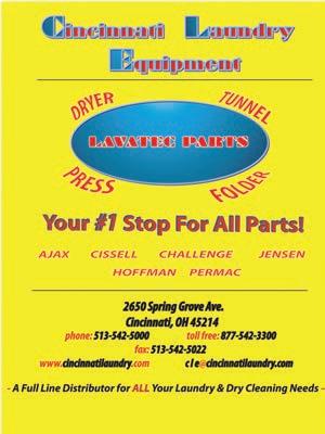 www.olekbelts.com 1-800-869-2683 Free www.olekbelts.com We’re your flatwork finishing and conveying O.E.M. Belt Match H.Q. Get the real thing for a Lot less $$$. O.E.M. Needlefelt Ironer Pads too! Better Belts, Better Prices, Better Service Visit our Website or Call 1-800-869-2683 For free, no obligation, price quotations and for your Free copy of our Product Catalog with over 40 samples. Ironer pads, covers, aprons, guide tapes, carts, slings, cleaners, waxes & more… • Hotel • OPL • Coin Op • Dry Cleaners • Industrial • Commercial • Cruise Industry Dry or Wet Style Filters to Work with “ALL” Dryer Sizes or Multiple Situations, Fiberglass or Stainless and Custom for Unique Situations! Lint Filters Model Big and Small – We’ve got a model for you! In-line Duct” Models – the Lint Lasso and Lint Sock –in production since 2011 All manufacturing done on premise 800-826-1245 www.cleancyclesystems.com • ccsystems@tqind.com LINT COLLECTORS & FILTERS ★ Our In-Line Lint Filter mounts inside, saves space! ★ Fiberglass Wet Filters - 6,000 to 40,000 cfm ★ Fiberglass or Stainless Steel Dry Filters ENERGENICS CORPORATION Talk with our Design and Engineering Staff about your needs. Hundreds Sold Annually. 800-944-1711 www.energenics.com FLATWORK SUPPORT CARTS, TRUCKS & BASKETS For more classifieds visit: .com www. AMERICANLAUNDRYNEWS PACKAGING SYSTEMS & SUPPLIES